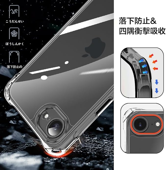 【高耐衝撃性・レンズと液晶を保護】カメラレンズの周りに段差をつけて擦り傷を防ぎます、平らな場所においても、液晶画面とカメラレンズに直接触れることがなく、ケース四隅のエアクッションデザインにより、ケースの四角を強化し、本体が落ちる場合に伝わる衝撃を吸収し、落下時の衝撃を最小限に抑えます、iPhoneを全方位からしっかり守れます。