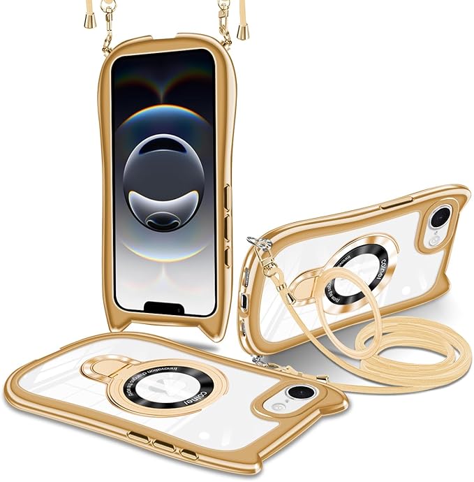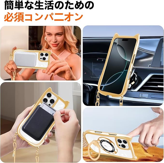 iPhone 16e ケース クリア TPU メッキ 背面は透明で 猫耳デザインで 可愛くてファッション的な iPhone 16e のスマホケースです ネックストラップ付きで 首に掛けることができます 縦横どちらでも映像視聴に対応しており 落下を防ぎ 黄変にも強いです
