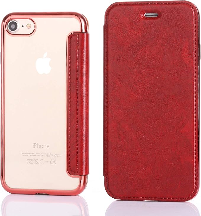 スマホケース 対応 iPhone 16e ケース 手帳型 背面 クリア 透明 高級なPUレザー+TPU 衝撃吸収 軽量薄型 ブランド アイフォン16e カバー (ワインレッド, iPhone 16e)