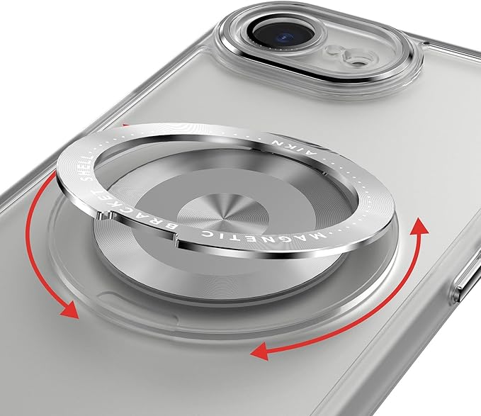 iPhone 16E 用 ケース リング付き リング360 回転スタンド機能 縦横両対応 透明 黄ばみ防止 ワイヤレス充電 アイフォン 16E スマホケース レンズ保護 米軍規格 耐衝撃 携帯カバー マグネット搭載 車載ホルダー マグセーフ対応 おしゃれ クリア(ホワイト)