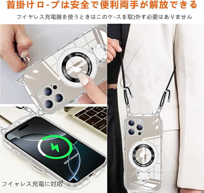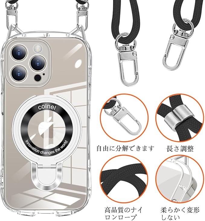 【多目的キャリー & ファッションデザイン】調節可能なストラップにより、サイド、またはフロントに持ち運べるときに完璧にあなたの隣に掛けることができます。 このアクセサリーはファッションだけでなく、通常のストラップよりも快適で実用的です。 作業、旅行、出張、ショピング、散歩、コンサート、パーティーに最適です。手を離しても、携帯電話を携帯できます。 【スタンド機能】多機能スタンドとリング一体型の斬新なデザインです。隠しスタンドの設計で、省スペース性に優れ、収納するときは水平的に置けできて、持ち運びの邪魔になりません。縦置きでも横置きでも安定して支えられ、40 ~120 の間で多角度自由に調整できます。FaceTimeでも動画でも両手が完全に解放されます。また、安定したアルミ合金製の円形スタンドを採用しており、携帯性からもファッション性からも唯一無二の存在です。【簡単着脱・美しさを保つ】猫耳部分にストラップ穴が設けられているのでストラップを簡単に取り付けたり取り外したりでき個人の好みに合わせて装着することができます。猫耳のデザインはストラップを取り外しても可愛らしさが損なわれず一体感のあるデザインで美しさを保ち続けます。【 360 全面保护】、各穴に誤差がなく、すべての機能はケースをつけたままスムーズに操作できます。ケースは、型どりを緻密に実施しておりレーム部分とカメラのフチをちょうどいい設計し。平らな場所においても、画面とカメラレンズに直接触れることがなくまたケースの四隅に落下時の衝撃を効率よく吸収するための技術落下時の衝撃を最小限に抑えます。 【フレキシブル&柔軟】 このTPU+PC ケースは、ネックバンドの電話ケースは高品質のンで作られ、透擦り傷防止 柔らかい手触り滑り止め 黄変防止衝突や引っかき傷から電話を保護できます 調節可能なショルダークロスボディネックレス このアクセサリーはファッションだけでなく、通常のストラップよりも快適で実用的です。