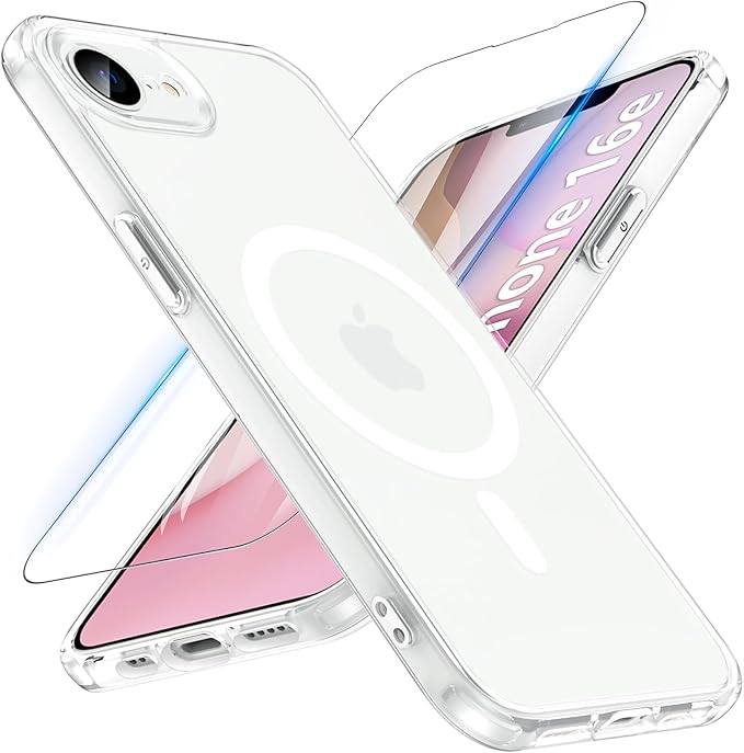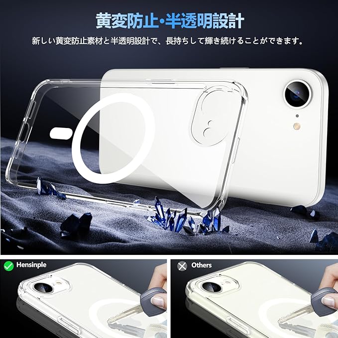 Hensinple iPhone 16e ケース 2025【MagSafe対応・ガラスフィルム付き】アイフォン16e ケース 透明 耐衝撃 指紋防止 滑り止め ストラップホール iPhone 16e カバー 黄ばみなし マグネット搭載 マグセーフ対応 iPhoneSE4/iPhone16E スマホケース 6.1インチ用 クリア