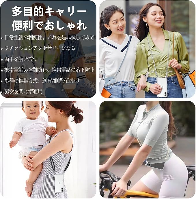 【ショルダーストラップ 付き】電話ケースの特別な四隅のデザインにより、ストラップを垂直または水平にリンクできます。柔らかいナイロンストラップで首を快適に保ち、ストレッチの長さを調整でき、ストラップを取り外して、スマホケースを単独で使用できます。