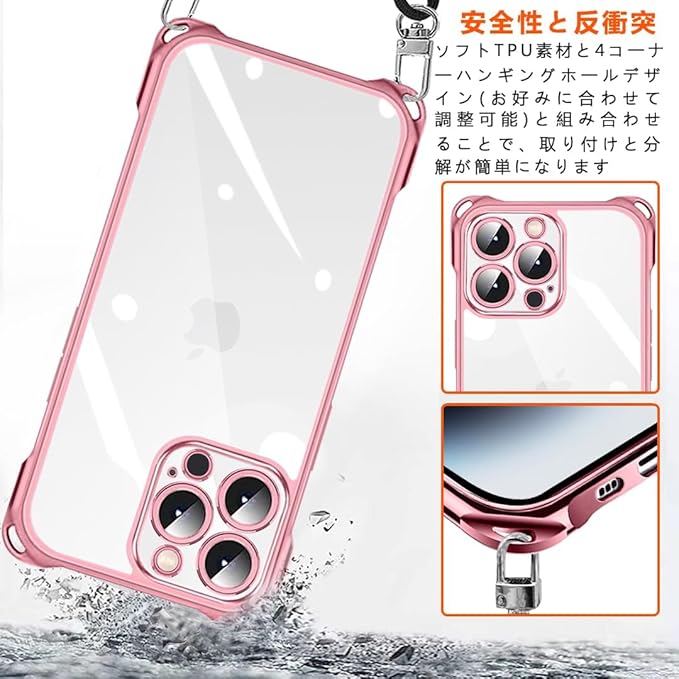 iPhone 16E se4 2025 ケース クリア ショルダー TPU メッキ加工 カバー iphone 16E se4 ストラップケース新型韓国 チャーム シリーズ 肩掛け 斜めかけ 首掛け 縄掛け カバー 縄掛 長さ調整可能 薄型軽量 耐衝撃 1.5MM 取り外し可能 電波影響なし Qi急速充電対応 指紋防止 全面保護 落下防止 アイフォン16E se4 スマホケース