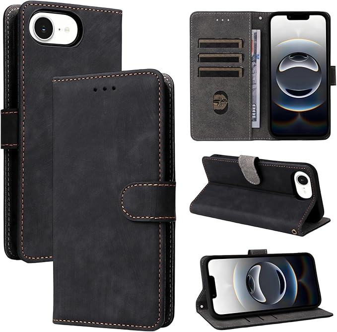 For iPhone 16e ケース 手帳型 カバー For iphone se 第4世代 2025 財布型 高級PUレザー カード収納スタント機能/耐衝撃/耐摩擦/全面保護/薄型/マグネット開閉 防水 iPhone SE4 ノート型 人気 おしゃれ 男女兼用 For iPhone 16E ブラック