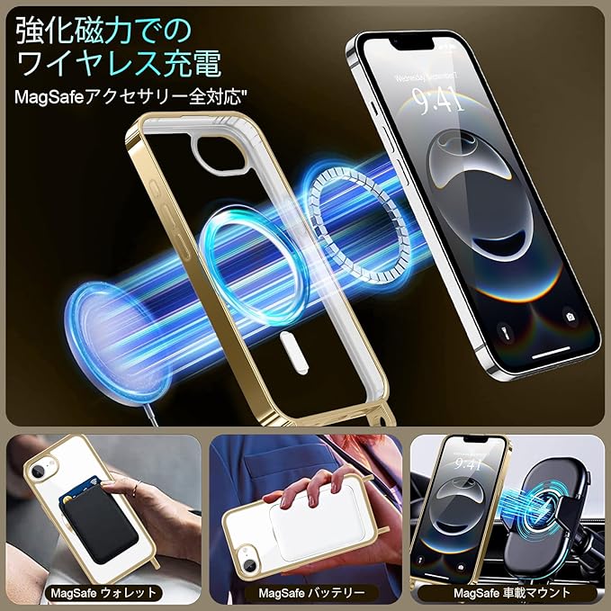 【磁気充電対応】: 内蔵の強力マグネットで、MagSafe対応のワイヤレス充電器やカーマウント、パワーバンクなどと簡単に着脱可能。ケースを外す必要は一切ありません。