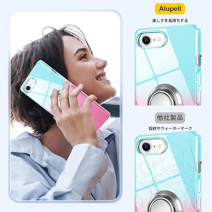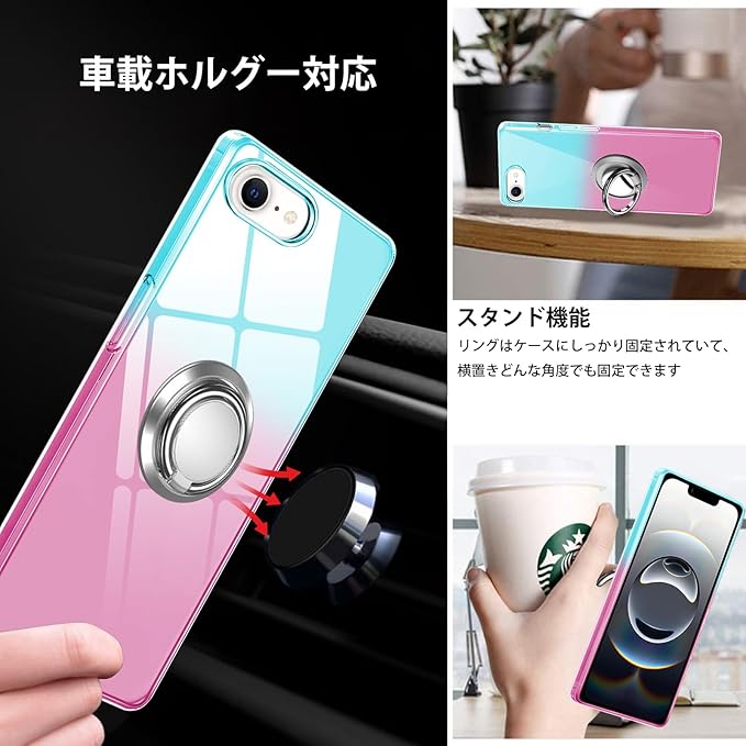 iPhone 16e ケース リング TPU 薄型 軽量 アイフォン 16e ケース グラデーション色 耐衝撃 指紋防止 車載ホルダー対応 防塵 一体型 人気 携帯カバー あいふぉん16E カバー 6.1インチ 全面保護カバー 绿の粉