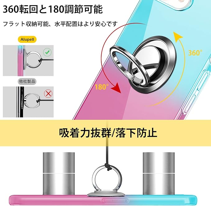 【重要な注意】リング部分はマグネットので、携帯ケースと一体になっており、イヤレス充電ができません。充電するときはケースを外してください。