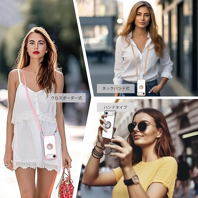 【リング付き機能】ケースを横置きにするとスタンド機能になり、持たず動画鑑賞などを楽しむことができます。リングは360度回転可能、180角度調節可能。一指着る式で、指がリングに通り抜け、片手で携帯を操作でき、落下防止します。ケースは柔らかいTPU素材を使用し、本体との擦れを防げ、ケースの着脱も簡単にできます。落下時には衝撃力を分散し、大事なデバイスを全面保護します。柔らかいナイロンストラップで首を快適に保ち、ストレッチの長さを調整でき、ストラップを取り外して、電話ケースを単独で使用できます。