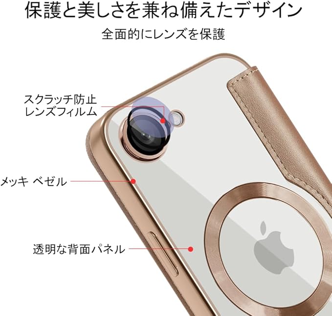 「超透明背面プレート」magsafeケースの背面は透明なTPUの裏打ちで、スマホに傷がつくのを防ぎ、スマホの色味を堪能することができます。