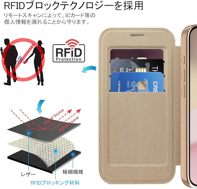 【REHOOF】iPhone 16e ケース 手帳型 magsafe対応 iPhone 16E 専用 カバー 財布型 ワイヤレス対応 6.1インチ 背面 透明 クリア アイフォン 16e ケース マグセーフ カード収納 高級PUレザー いphone16SE4 スマホケース 軽量 薄型 防塵 耐衝撃 全面保護 スマホカバー(チタンゴールト)
