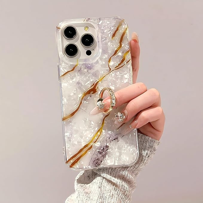 iPhone 16 用 ケース リング付き 大理石柄 シェル風 キラキラ ラメ いPhone ケース 韓国 かわいい オーロラ ゴージャス 綺麗 人気スマホケース マーブル 半透明 オシャレ シンプル マルチカラー ストラップホール付き