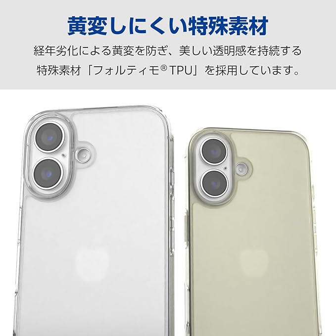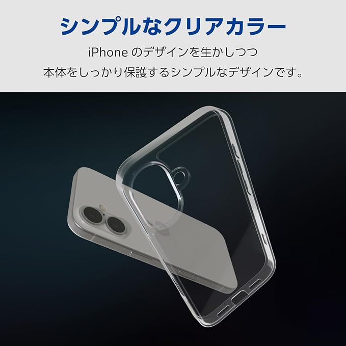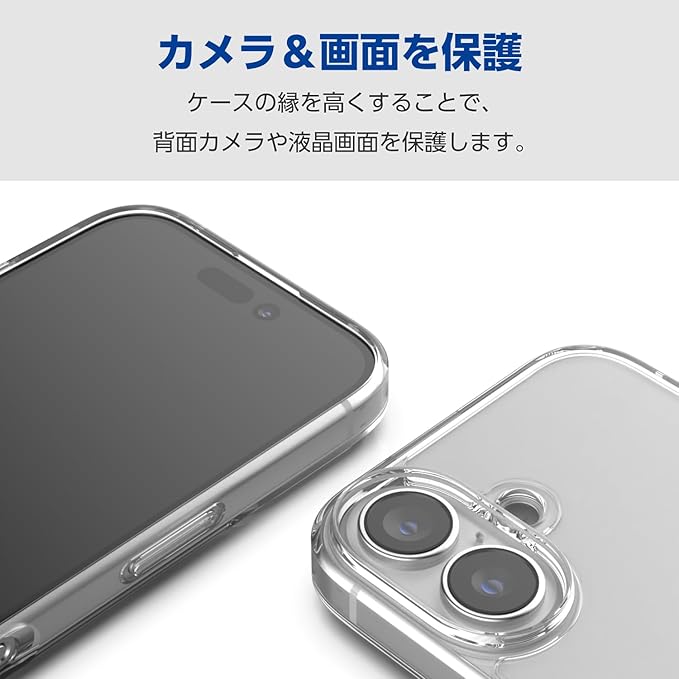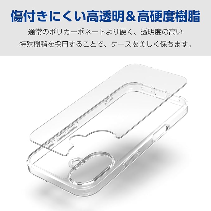 エレコム iPhone 16 ケース クリア 背面硬度5H ハイブリッド 黄変しにくい ストラップホール付き 4つ角エアークッション クリア ワイヤレス充電対応 PM-A24AHVCK2CR