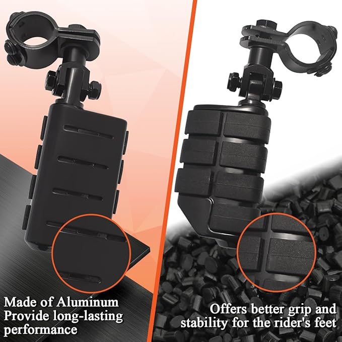 [調節可能な位置]:ハイウェイペグは簡単に調整でき、足に最適な位置を見つけることができ、よりリラックスした快適なライディング姿勢を促進します。