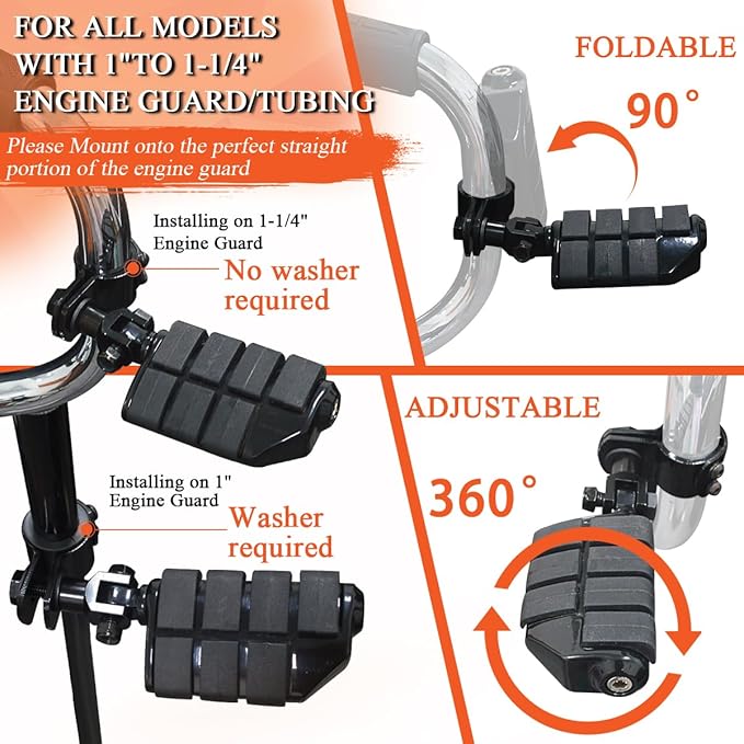ユニバーサル 調節可能 ハイウェイ フットペグキット 調節可能なエンジンガード フットレスト 取り付けクランプ付き ハーレーツーリング ソフテイル ダイナ スポーツスター CVO エレクトラグライド ロードキング ストリート グライド トライク ホンダ カワサキ スズキ ヤマハ インディアン ビクトリー 1インチ、1-1/4インチ、1-1/3インチ、25mm-32mm-34mm エンジン用 ガード/チューブ。 みじん切りのエンジンガードには適合しません。