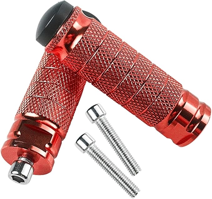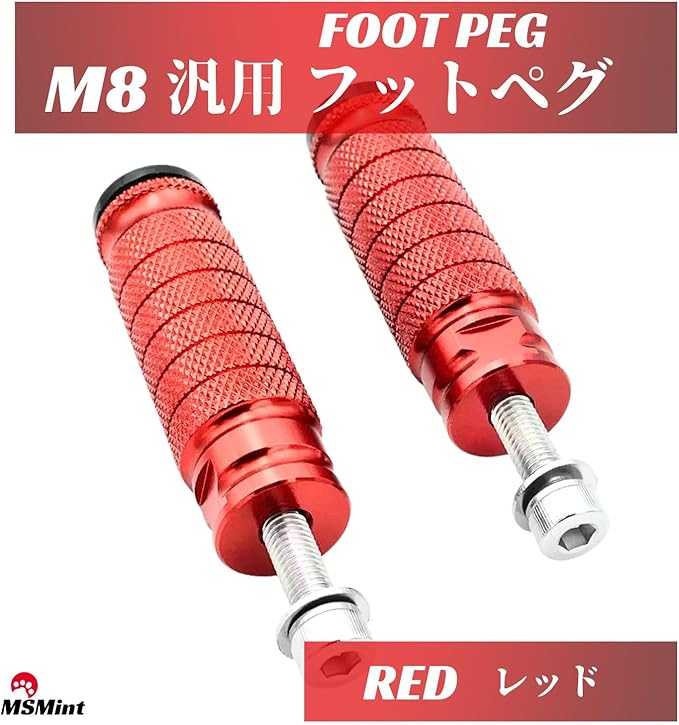 フットペグ ステップ M8 バイク ペダル フロントフットレスト バックステップ タンデムステップ 左右セット 汎用… (レッド/赤)