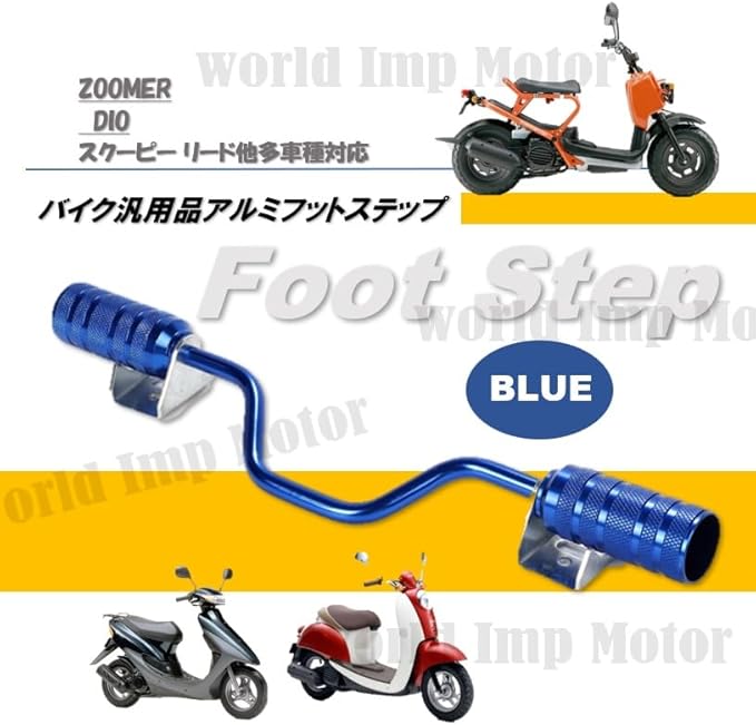 スクーター アルミ ステップ バー ブラック 黒 ディオ DIO AF18 AF27 AF34 AF35 AF55 AF56 ズーマー スクーピー リード スペイシー HONNDA 用 YAMAHA 用 JOG SUZUKI 用 アドレス アルミ フットステップ フットペグ 汎用 社外品 (ブルー)
