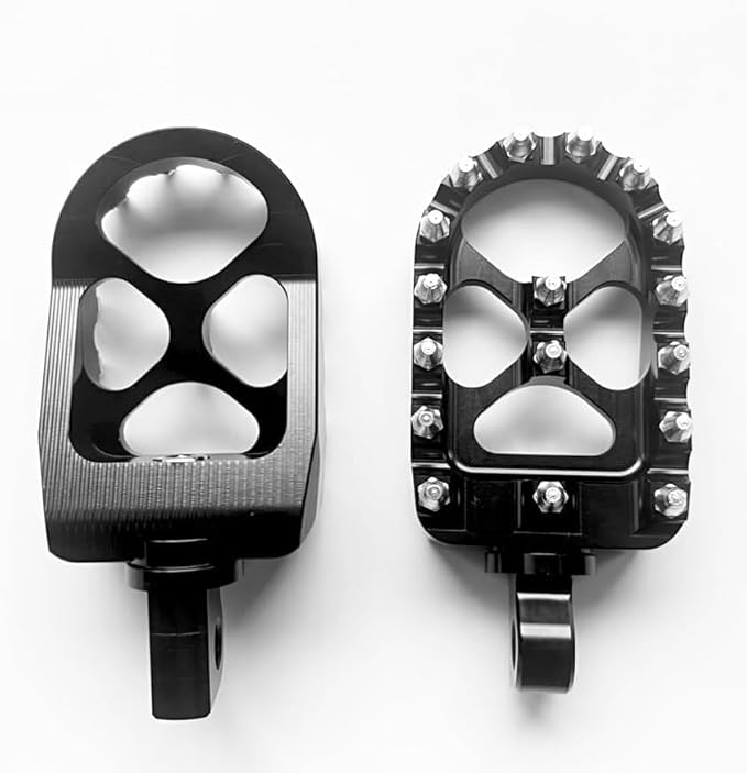 エクストラワイドプラットフォームはしっかりした足場を提供し、 バイクコントロールを向上させます。 色:ブラック 材質:アルミニウムCNC 商品の重量:150g x 2個 サイズ:約12cm(本体部分は約9cm) x 約5.5cm x 約3.2cm 適合機種:'02~'17VRSCのフォワードコントロール付きモデル用(VRSCDX、VRSCFを除く)。 '06 XL以前、'07 -'10 XL883、XL883C、XL883R、XL1200C、XL1200R、'07 -'11 XL1200L '91 - '17 Dyna(FLDを除く)に適合。 '84 - '17 前方コントロール付きソフテイルモデル(FXCW、FXCWC、FXSB、FXSBSE、FXSEを除く)