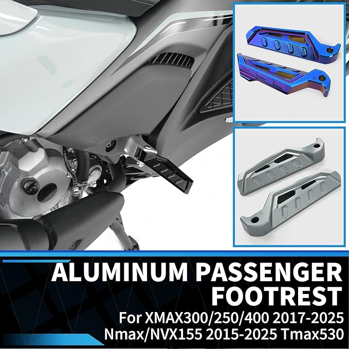 バイク用 フットレスト ペダル パッセンジャーフットペグ CNCアルミニウム 滑り止め リアセット XMAX300/250/400 (2017-2025) NMAX/NVX155 (2015-2025) TMAX530 (シルバー)