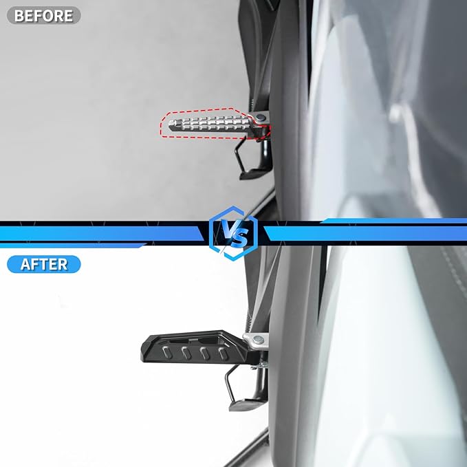 " 【簡単取り付け】 ドリル加工や改造不要!バイク側の既存ブラケットにフットレストの穴を合わせるだけで、追加作業なしで数分で完了。"