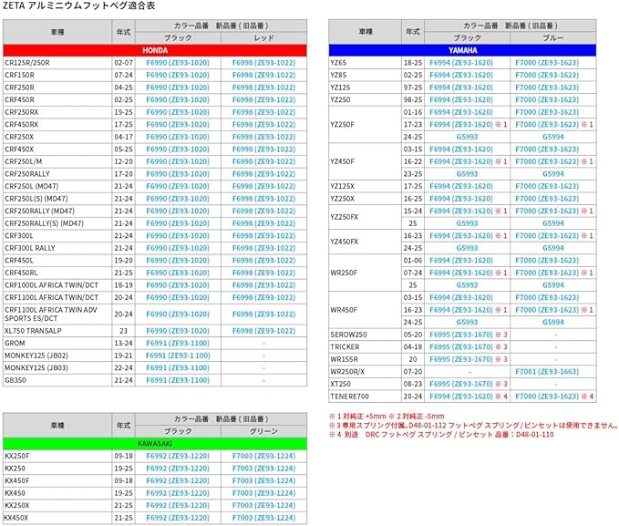 ジータレーシング(ZETA RACING) アルミフットペグ YZ250F '24-26,YZ450F '23-26,YZ250FX/WR250F '25,YZ450FX/WR450F '24-25 ブルー 前後幅57mm 高強度 アルミ製 G5994