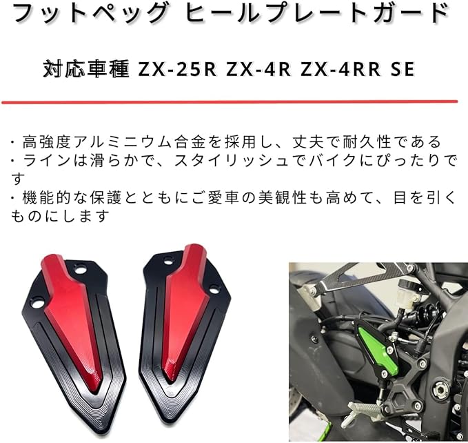 motokano フットペッグ ヒールプレートガード 対応車種 ZX-25R ZX-4R ZX-4RR SE (レッド)