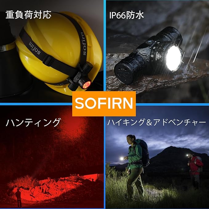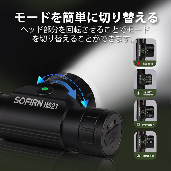 Sofirn HS21 ヘッドライト 充電式 赤光付き 2200ルーメン高輝度 ヘッドランプ スポットライト フラッドライト モーションセンサー搭載 防水仕様 強力ヘッドライト 夜釣り 登山 キャンプ ハンティング 安全帽 作業 緊急時用