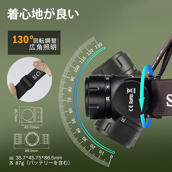 USB-C充電対応&長時間駆動:USB-C充電ポートを内蔵し、急速充電が可能です。赤色ライトはエコモードで最大425時間、白色ライトはエコモードで最大250時間の連続使用が可能です。