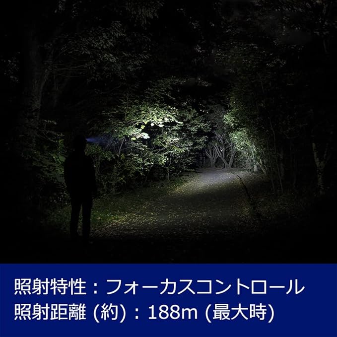 機能:2m落下耐久、耐塵・防滴仕様 (IP64準拠)、最大照射距離:約188m