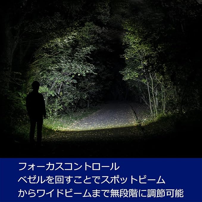 明るさ:High/670ルーメン、Mid/290ルーメン、Eco/30ルーメン、使用電池:専用充電池 または 単4形アルカリ電池 3本(別売り)