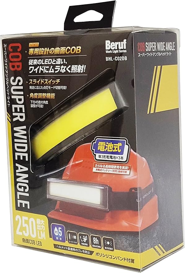 イチネンアクセス Beruf(ベルーフ) ヘッドライト COB スーパーワイドアングル ヘッドライト BHLーC02DB 87671 250LM 電池式