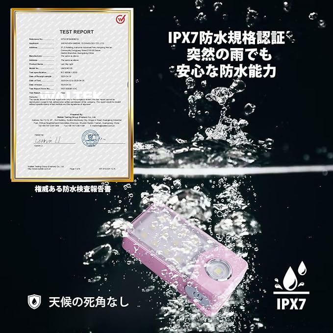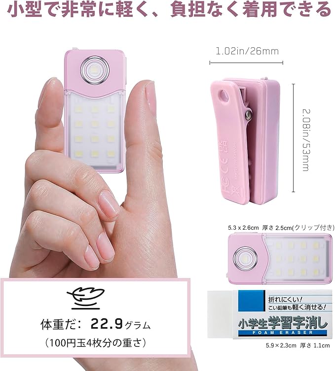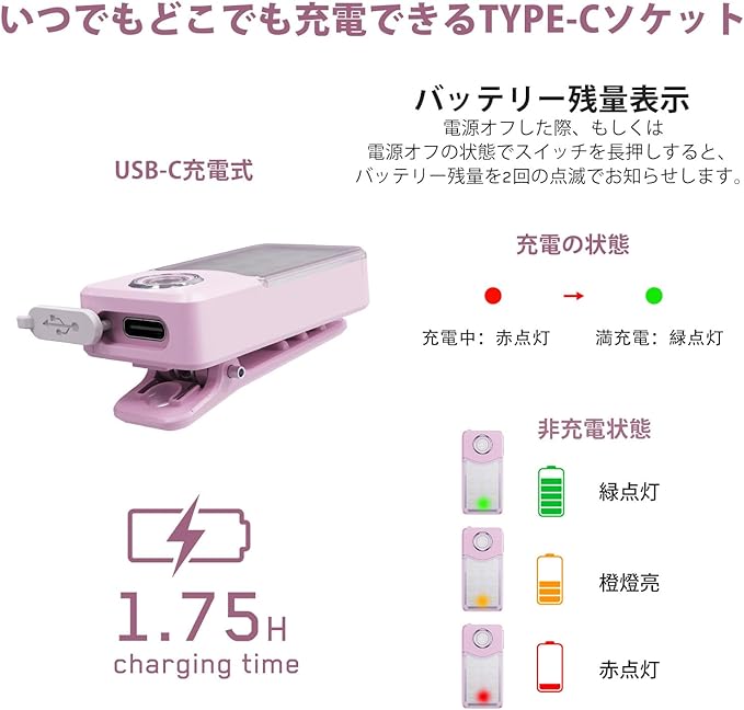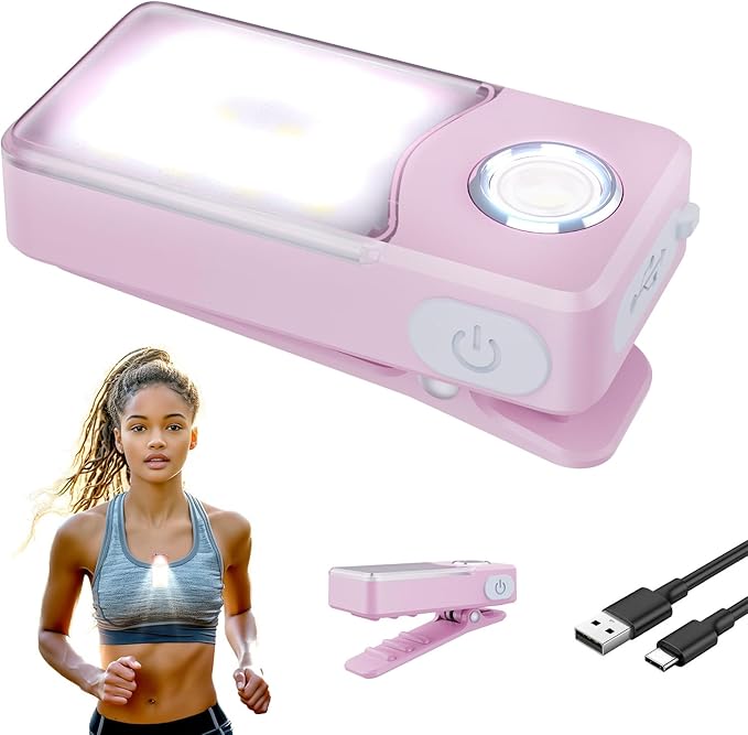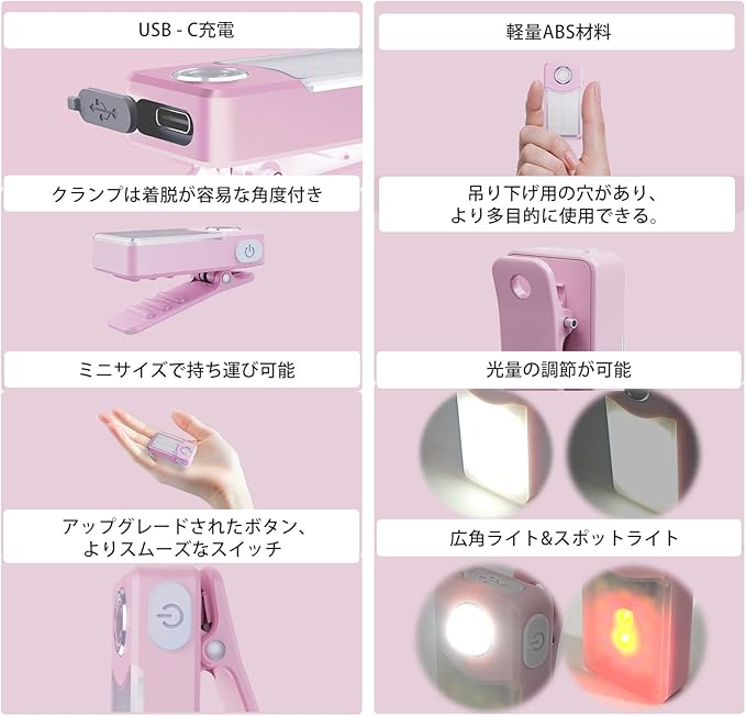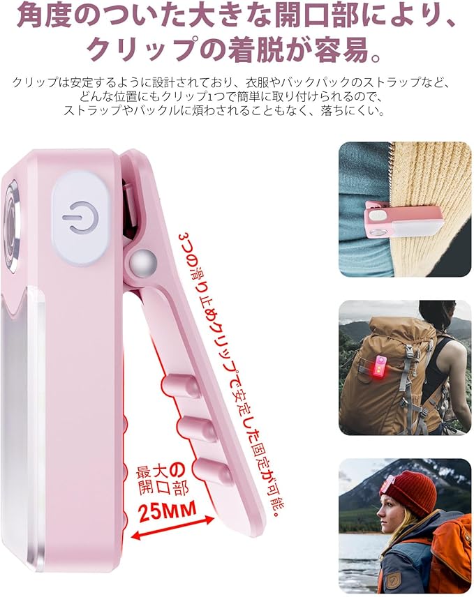 ランニングライトUSB-C充電式、3段階調光、アップグレード版2-in-1クリップライト、土砂降りOK防水コンパクトLED懐中電灯、【広角とスポット2タイプxモード記憶機能x軽量22.9gxIPX7防水】 (桜ピンク)