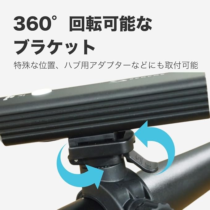 丈夫な放熱性の高いアルミニウム製ボディ。ハンドルブラケット(回転機構/22~35mm対応)付属。