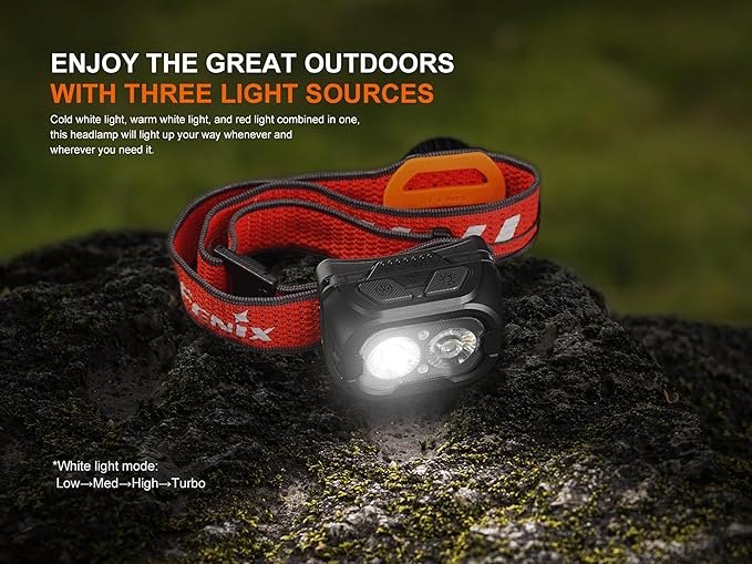 FENIX HL18R-T V2.0 充電式ヘッドライト トレイルランニング/アウトドア | 800ルーメン | 125m | 最大160時間 | デュアルプライマリビーム - クール&ウォームホワイト | 5lm レッドビーム | スポーツクリック調整ヘッドバンド | IP66 (ホワイト)