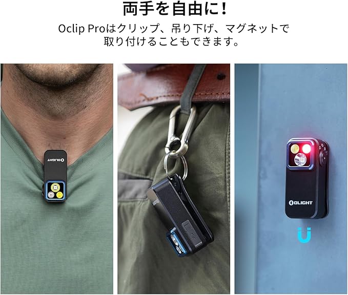 [持ち運びに便利なコンパクト] クリップでベルト、服、帽子やズボンにしっかりと挟まれます。吊り下げ穴のデザインは吊り下げることができます。また、鉄や金属に吸着でき、両手を解放する利便性をお楽しみください。耐久性に優れたクリップは、対象物の厚さは14mmまで挟み可能です