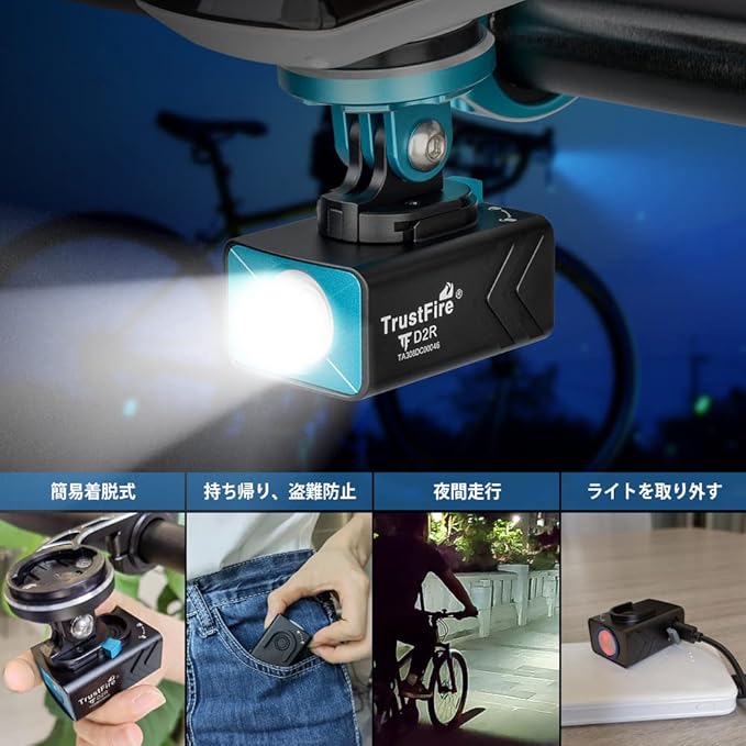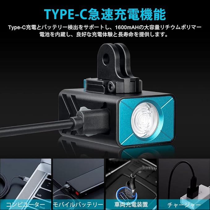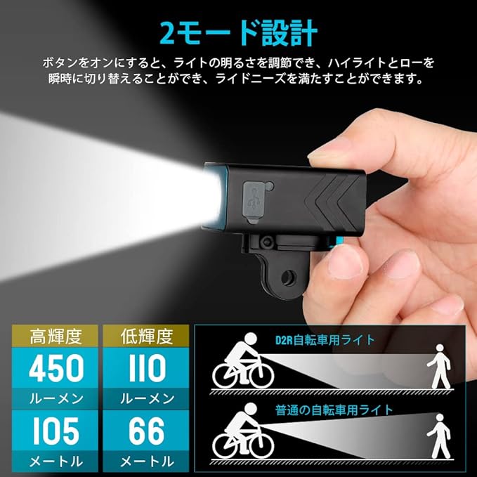 ✅【自転車 ライト 電池式】D2R自転車用ライトType-C充電と電源検出をサポートし、高容量リチウムポリマー電池を内蔵し、良好な充電体験と長時間の電池寿命を実現しています。
