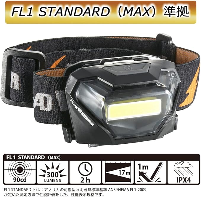 ● FL1 STANDARD※(MAX)準拠 ※アメリカの可搬型照明器具標準基準ANSI/NEMA FL1-2009が定めた測定方法で性能評価をした性能表示規格