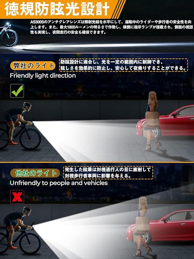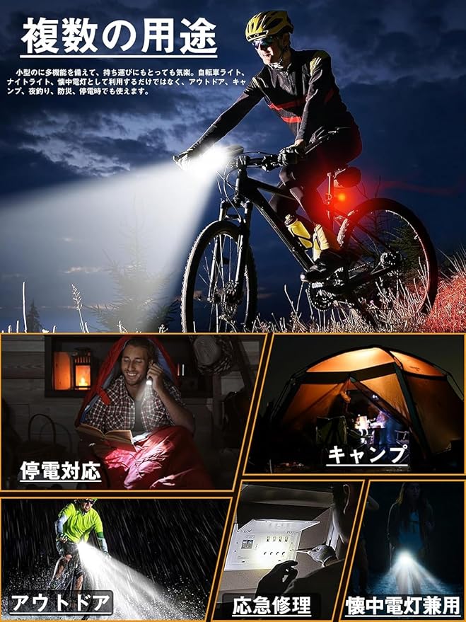 新しい世代 自転車 ライト 大容量 1000ルーメン USB充電式 サイドセーフティドライビングライト 懐中電灯兼用 停電対応 地震対策 登山 夜釣り 日本語説明書付き