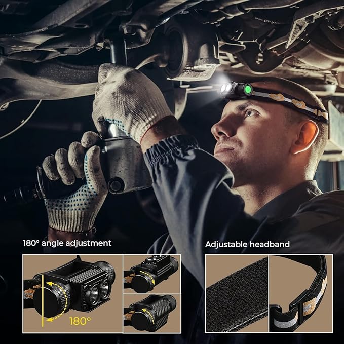 Sofirn ヘッドライト D25LR 強力軽量ヘッドフラッシュライト 明るい白色光と660nm深赤色光 USB充電式 IP68防水 キャンプ、ハイキング、ハンティング用
