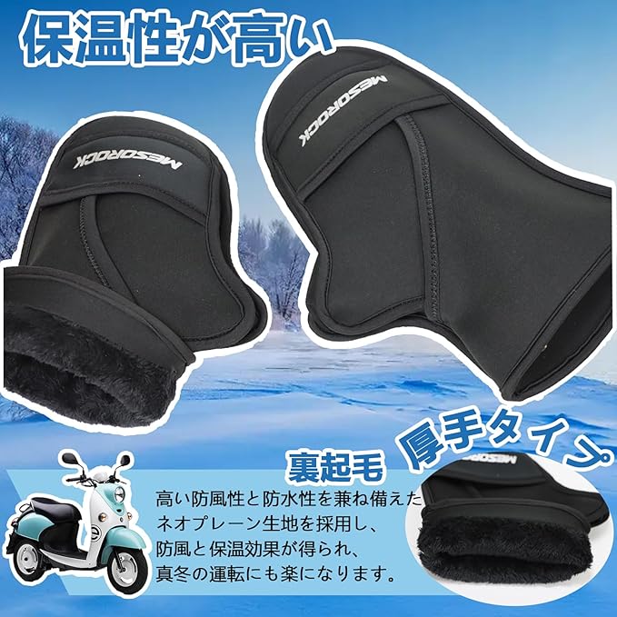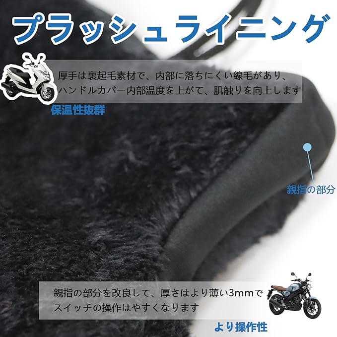 バイクハンドルカバー 撥水 防寒 バイク用ハンドルカバー 原付 ハンドルカバーバイク 冬 防寒 バイク 防風 ハンドルカバー 厚手 通勤通学 ハンドルカバーバイク 冬 裏起毛 フリーサイズ 汎用 厚手