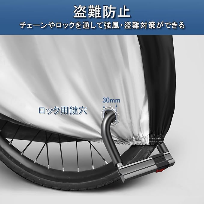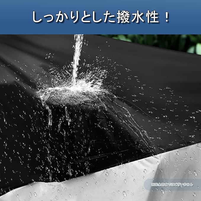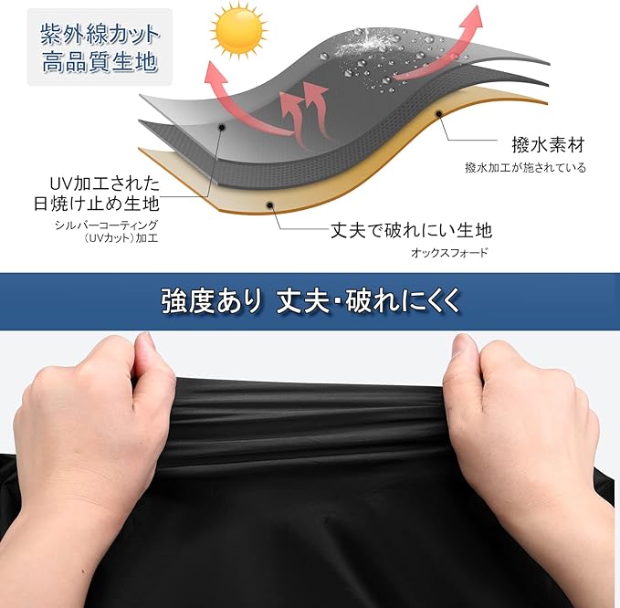 【撥水性抜群 紫外線カット】2倍の撥水加工、UVカットのシルバーコーティングが施されて、紫外線を90%カットし、日焼けから自転車をしっかりと守れます。
