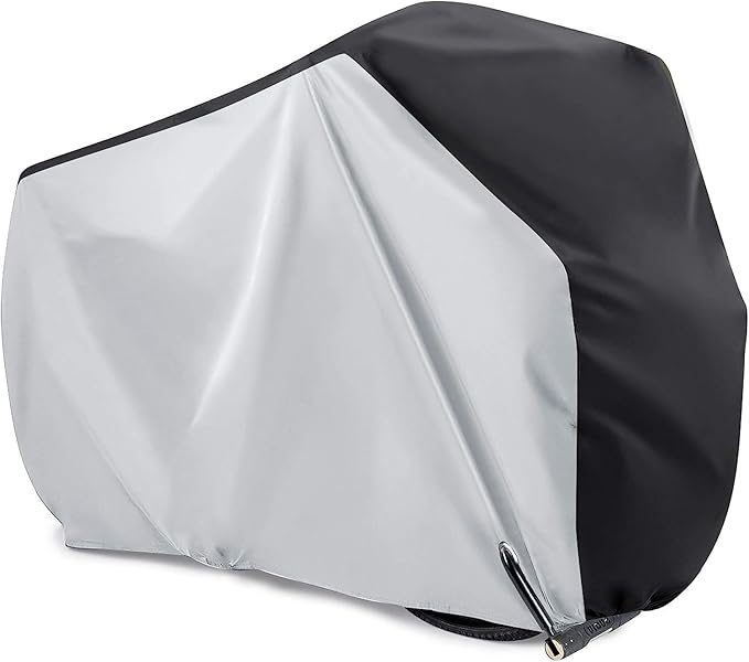 【強度あり・破れにくい】高密度のポリエステル生地を使用し、ビニール製の自転車カバーより5倍以上の強度があり、丈夫で破れにくく、耐久性あり、自転車カバーにちょうどいい厚さ、バイクカバーのように厚すぎず、着脱がしやすいサイクルカバーです。