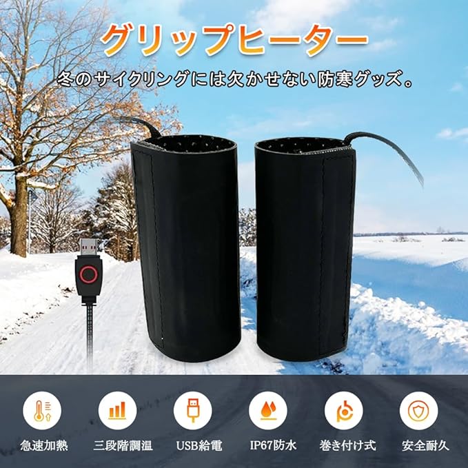 グリップヒーター バイク用 巻き付け式 USBグリップヒーター 3段階温度調整 スイッチ付き 滑り止め 防寒ホットグリップ バイク グリップ ホットカバー 取り付け簡単 自転車 バイク ハンドル ホットグリップ バイクスロットル 防水 防寒グッズ