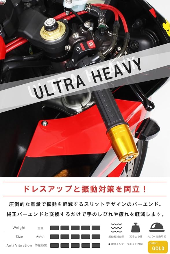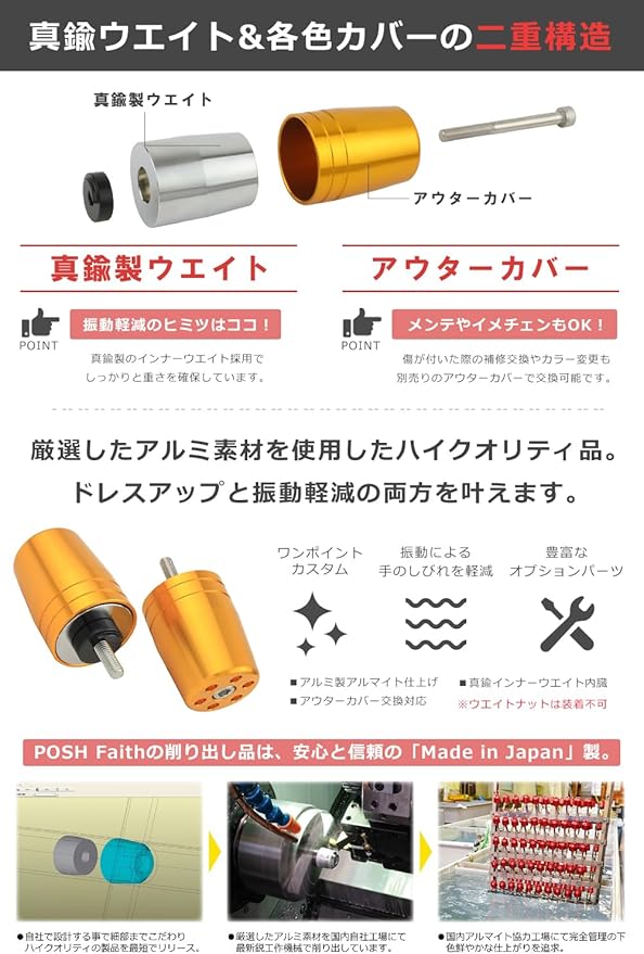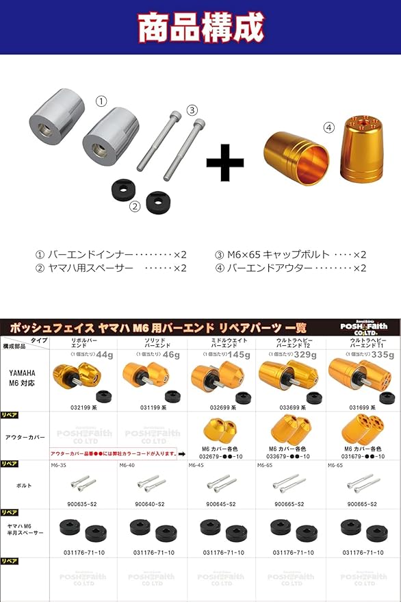 ポッシュフェイス(POSH FAITH) バイク用品 ハンドルバーエンド 【日本製】 ウルトラヘビー ヤマハ純正ハンドル用M6タイプ YZF-R25他 ゴールド 031699-04-10