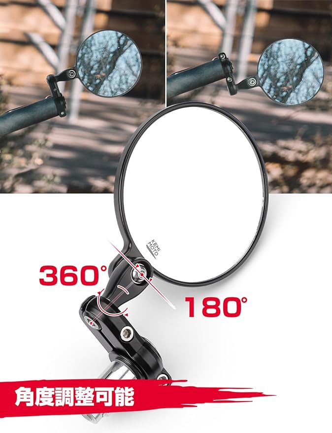 KEMIMOTO バーエンドミラー バイク 左右セット ハンドルバー径13-21mm対応 バイクミラー 丸型 車検対応 CNCアルミ製 可倒式 軽量 オートバイミラー 汎用ミラー 角度調整可能 折りたたみ式 ブラック KM203