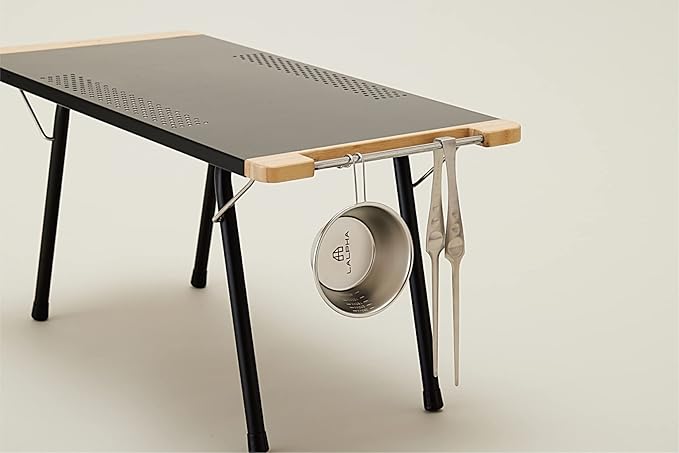 便利なフックバーを装備。 フックバーがあることでシェラカップやタオル、小物等を引っ掛けることができます。