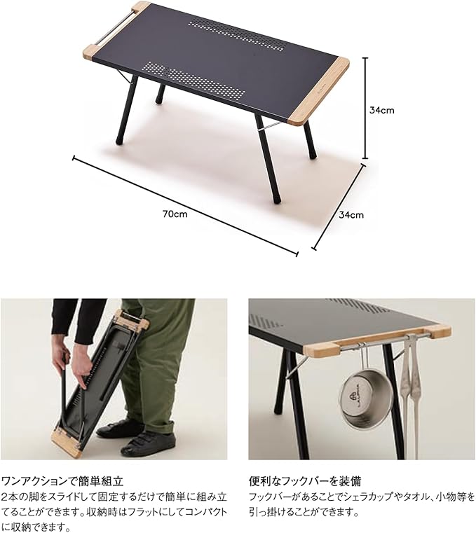 LALPHA (ラルファ) 焚き火テーブル ロングタイプ ブラック 約70 34cm 折りたたみ式 ステンレス製 耐熱仕様 収納ケース付き 簡単設営でキャンプサイトを快適に TA-080BK