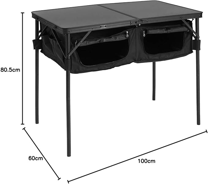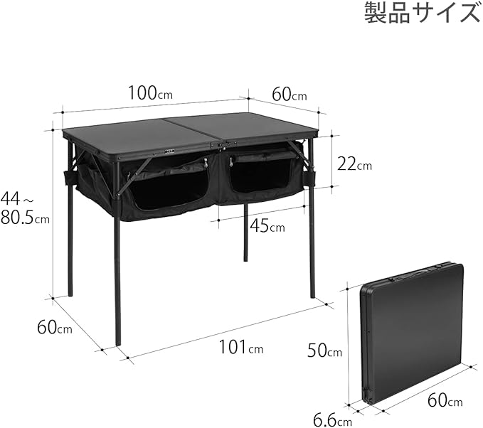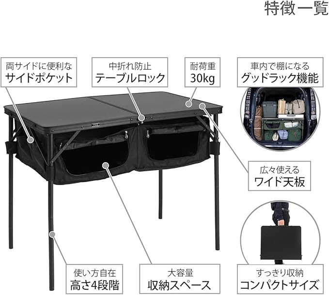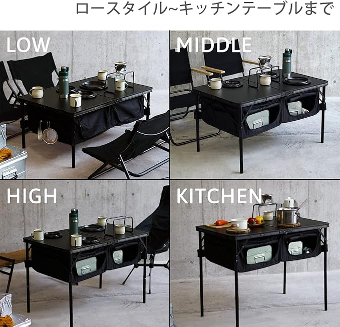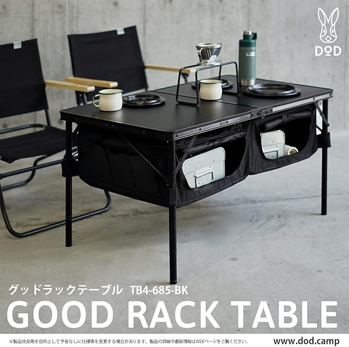 DOD(ディーオーディー) グッドラックテーブル 折りたたみ式 大容量収納スペース 4段階高さ調節 ブラック/カーキ/タン
