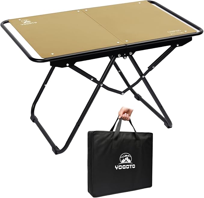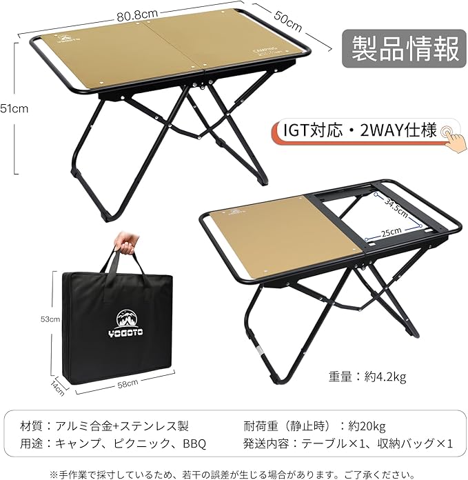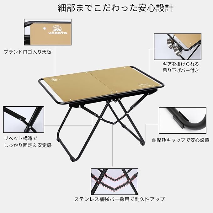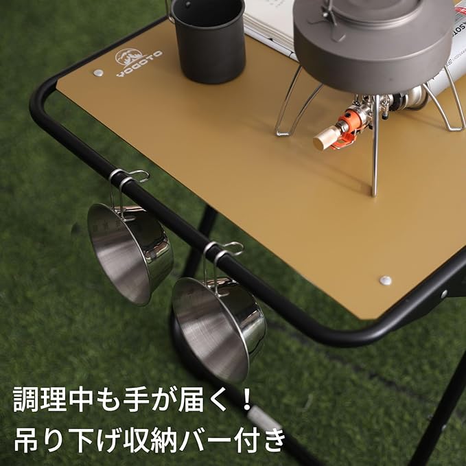 YOGOTO アルミ製キャンプテーブル IGT対応 折りたたみ式テーブル 軽量 頑丈 天板取り外し可能 防錆 耐熱仕様 アウトドア BBQ ソロキャンプに最適 コンパクト収納 キャリーバッグ付き (カーキ色)