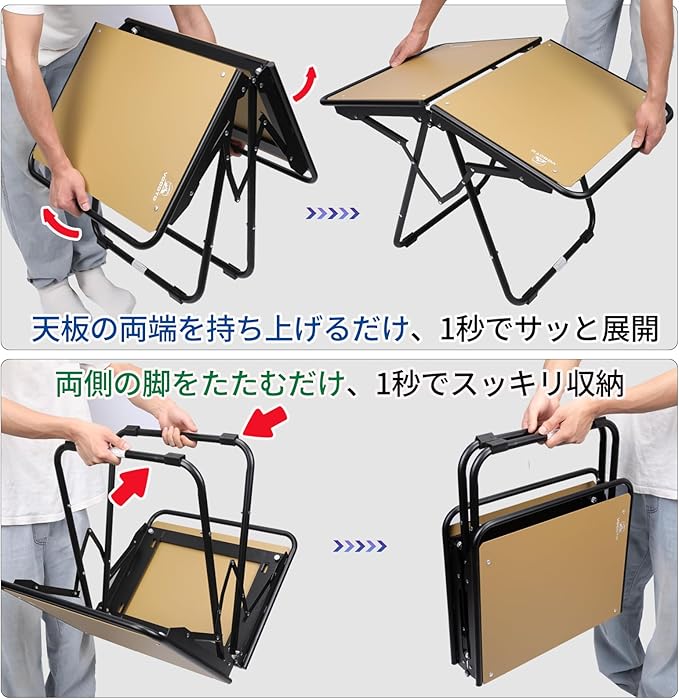 【商品仕様】天板・フレームには軽量かつ丈夫なアルミ合金を使用。展開サイズ:約80.8 50 51cm、収納サイズ:約55 50 12cm、重量は約4.2kg。収納ケース(ポリエステル素材)付きで持ち運びも快適。